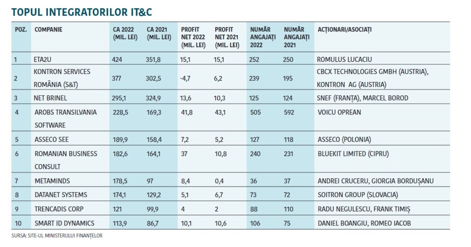 Ziarul Financiar a publicat Anuarul ZF - Cei mai mari jucători din economie 2023, iar la capitolul Topul Integratorilor IT&C, BRINEL s-a clasat pe podium, poziția a 3-a.